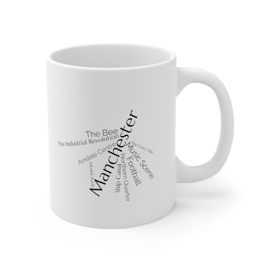 Manchester word mug, local mug, geography mug, gift, mug, coffee cup, word mug, wordcloud mug, christmas gift, birthday gift