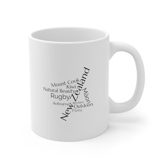 New Zealand word mug, local mug, geography mug, gift, mug, coffee cup, word mug, wordcloud mug, christmas gift, birthday gift