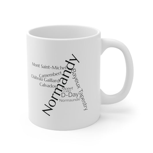 Normandy word mug, local mug, geography mug, gift, mug, coffee cup, word mug, wordcloud mug, christmas gift, birthday gift