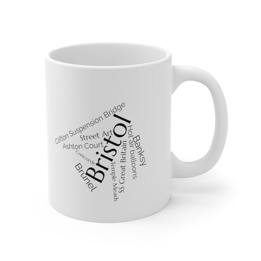 Bristol word mug, local mug, geography mug, gift, mug, coffee cup, word mug, wordcloud mug, christmas gift, birthday gift